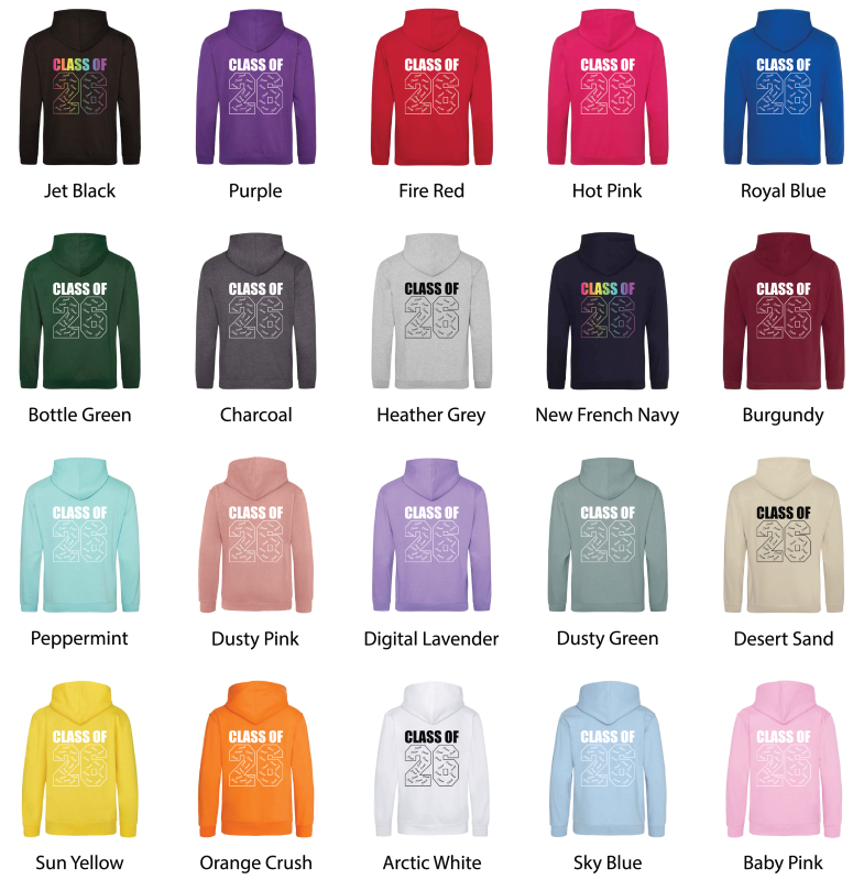 Payhembury Primary School 2026 Leavers Hoodies - Various Colours - JH001: Black with Rainbow Print Adult Small
