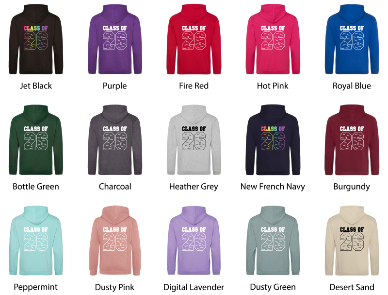 Upottery Primary School Leavers 2026 Hoodies - Various Colours: Adult Medium Black with Rainbow Print
